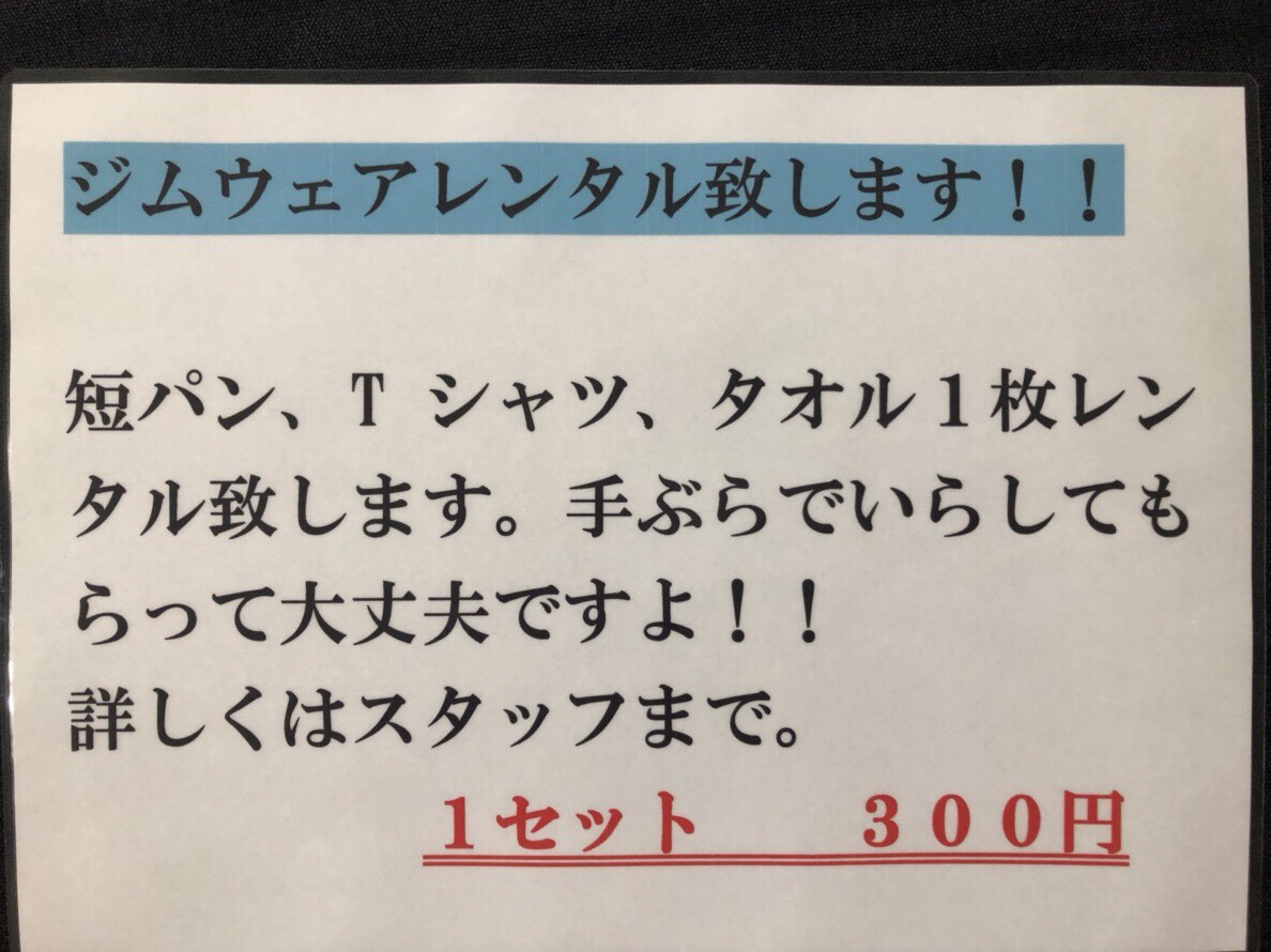 ジムウェアレンタル致します!